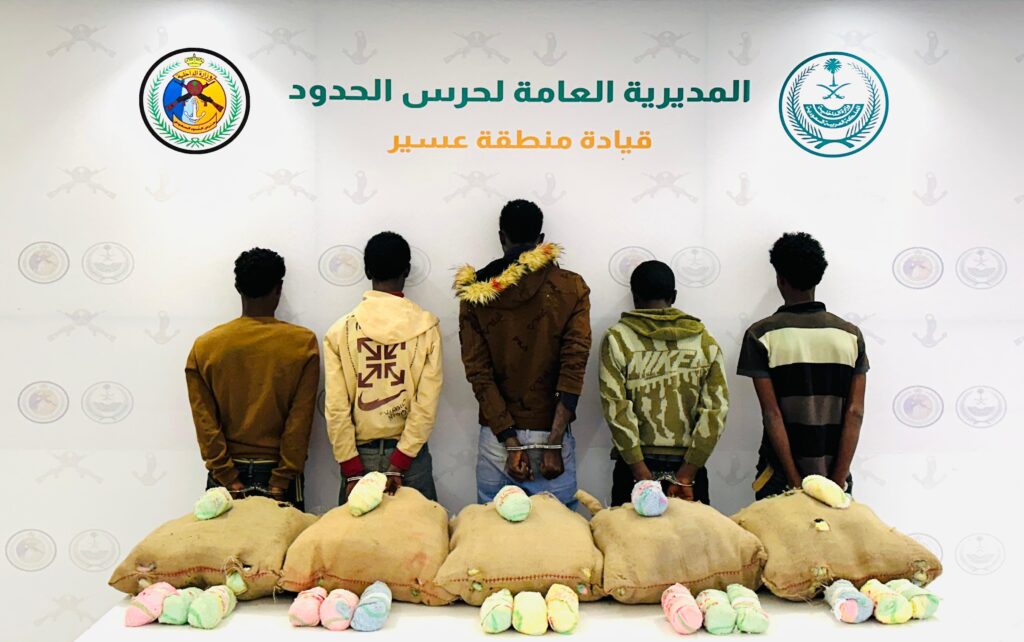 مرفت طيب – عسير : قبضت الدوريات البرية لحرس الحدود في قطاع الربوعة بمنطقة عسير