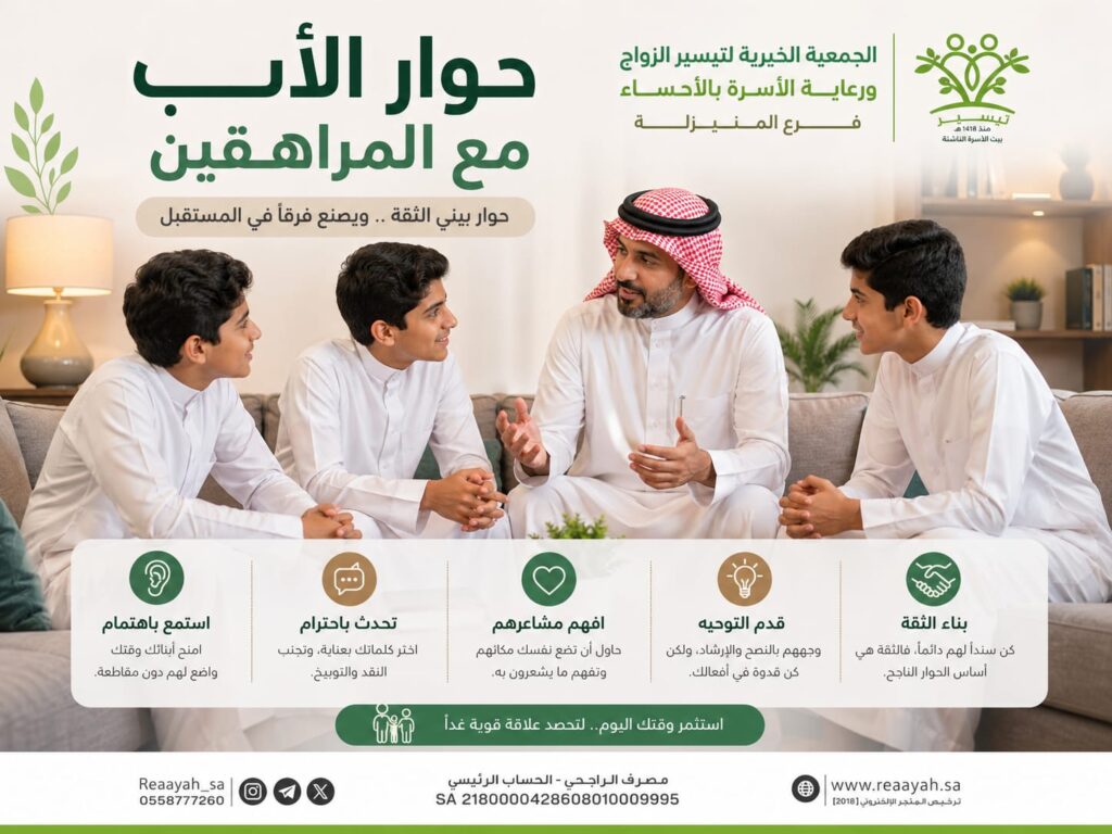 (287) مشاركًا ومشاركة في أمسية “أهمية الحوار مع المراهقين” بفرع المنيزلة