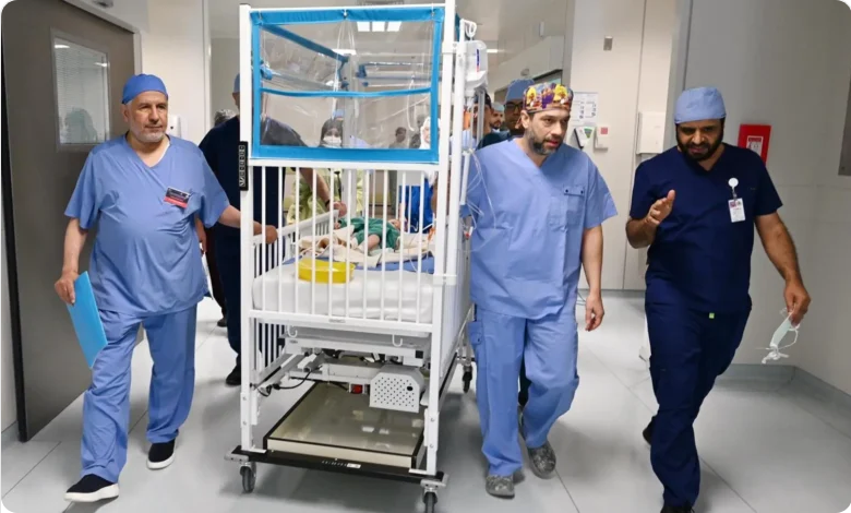 إنفاذًا لتوجيهات خادم الحرمين الشريفين الملك سلمان بن عبدالعزيز آل سعود، وسمو ولي العهد الأمير محمد بن سلمان بن عبدالعزيز آل سعود -حفظهما الله-، بدأ الفريق الطبي والجراحي التابع للبرنامج السعودي للتوائم الملتصقة، صباح اليوم الأربعاء، عملية دقيقة لفصل التوأم الطفيلي المصري “محمد عبدالرحمن جمعة”، البالغ من العمر سبعة أشهر وثمانية وعشرين يومًا. تجري هذه العملية في مستشفى الملك عبدالله التخصصي للأطفال بمدينة الملك عبدالعزيز الطبية التابعة لوزارة الحرس الوطني في مدينة الرياض.
