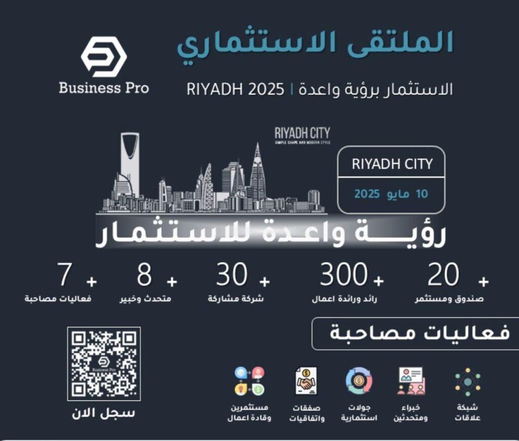 يأتي هذا الحدث ضمن روية المملكة لتعزيز جاذبيتها الاستثمارية وتحقيق مستهدفاتها لتحويل الرياض إلى مركز استثماري عالمي، ودعم بيئة ريادة الأعمال والمشاريع الخضراء والذكية.