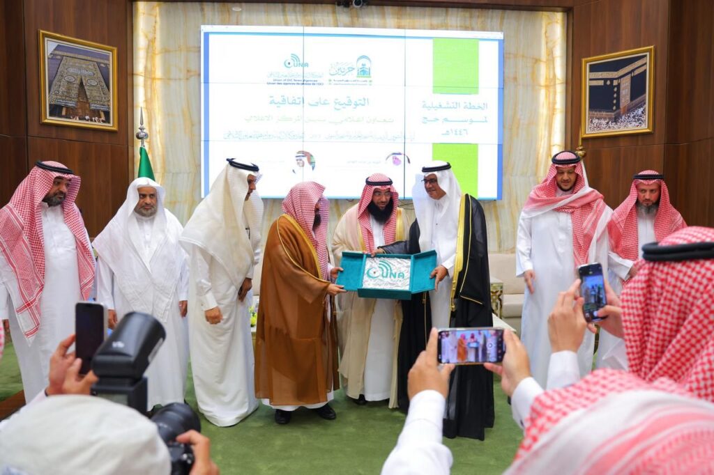 عضدت رئاسة الشؤون الدينية بالمسجد الحرام والمسجد النبوي، المسارات الإثرائية الاعلامية لإيصال رسالة الحرمين الشريفين الوسطية للعالم الإسلامي بعدة لغات؛ حيث وقع المركز الإعلامي برئاسة الشؤون الدينية اتفاقية تعاون إعلامي مع اتحاد وكالات منظمة التعاون الإسلامي “يونا”، برعاية معالي رئيس الشؤون الدينية الشيخ الدكتور عبدالرحمن السديس، بمقر الرئاسة بمكة المكرمة؛ لتعزيز التعاون الإعلامي، وإبراز جهود المملكة في خدمة الحرمين الشريفين إعلاميًا في المحيط الإسلامي، وتعظيم الريادة الدينية الوسطية في العالم بعدة لغات.