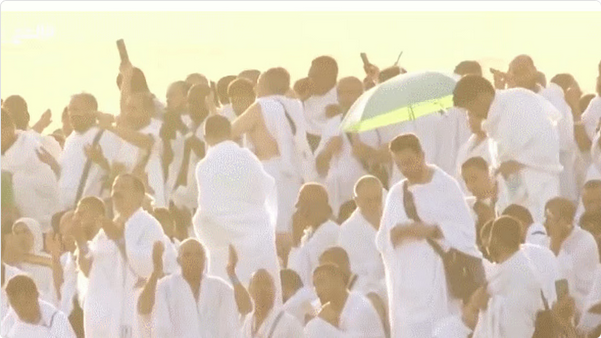 وعرضت قناة “الإخبارية” مشاهد آسرة تُظهر الحجاج وهم يتوزعون على سفوح جبل الرحمة، في أجواء تغمرها السكينة والخشوع.