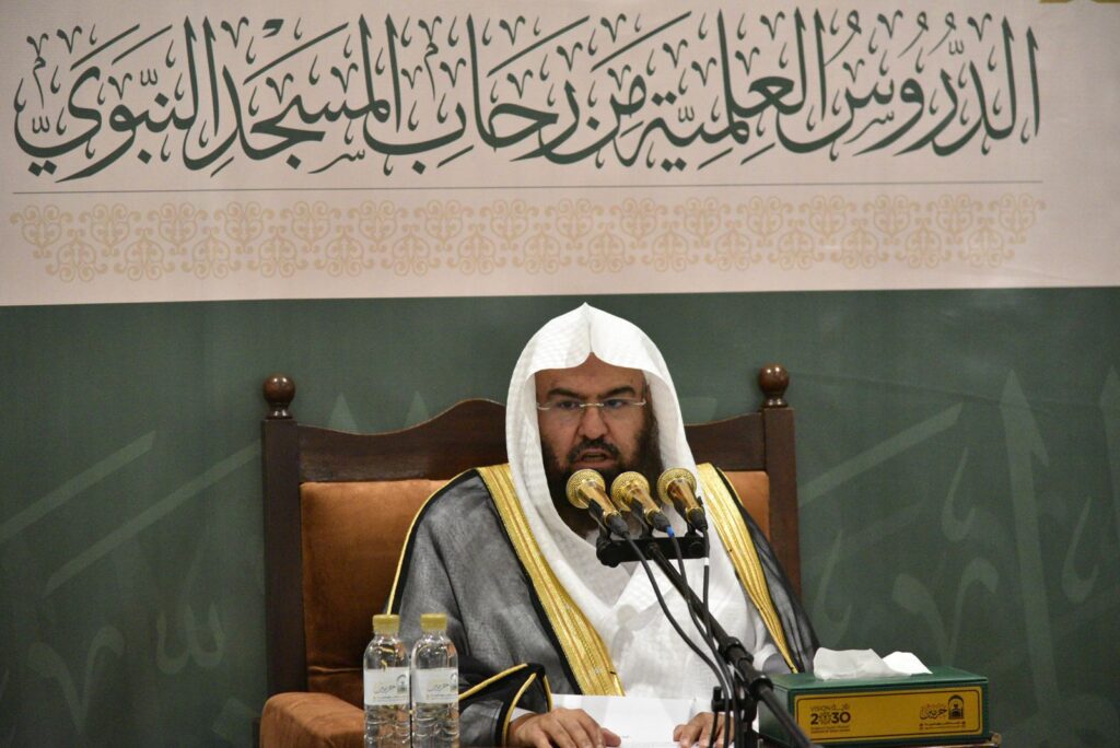 درسه الشهري في المسجد النبوي وسط حضور كثيف من تلامذة الشيخ وزوار المسجد النبوي، وكذلك شمل الحضور فئة من الصم والبكم الذين تابعوا الدرس من خلال الترجمة الفورية لهم حيث يحظون باهتمام كبير من معالي الشيخ السديس۔