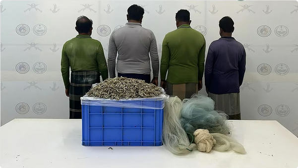 تمكنت الدوريات الساحلية لـحرس الحدود بمركز القحمة في منطقة عسير من ضبط أربعة مقيمين من الجنسية البنغلاديشية. جاء هذا الضبط لمخالفتهم لائحة الأمن والسلامة لمزاولي الأنشطة البحرية في المياه الإقليمية للمملكة، حيث كانوا يمارسون نشاط الصيد دون الحصول على تصريح نظامي. وقد عُثر بحوزتهم على أسماك مصيدة.
