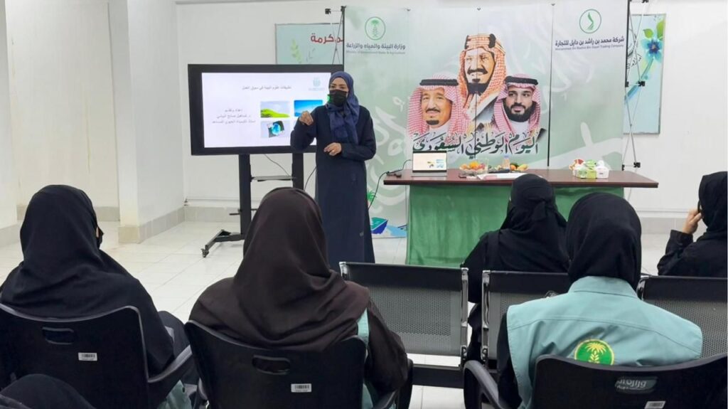 نفذ مكتب وزارة البيئة والمياه والزراعة بالعاصمة المقدسة، ممثلاً في قسم القطاع غير الربحي والتطوع ووحدة الأسواق، ورشة عمل تطبيقية عن “تطبيقات علوم البيئة في سوق العمل”، استهدفت المتدربات في المكتب بتخصصات علوم البيئة وتكنولوجيا حماية البيئة، وقدمتها الدكتورة تساهيل صالح البيشي، أستاذ الكيمياء الحيوية المساعد في جامعة أم القرى.