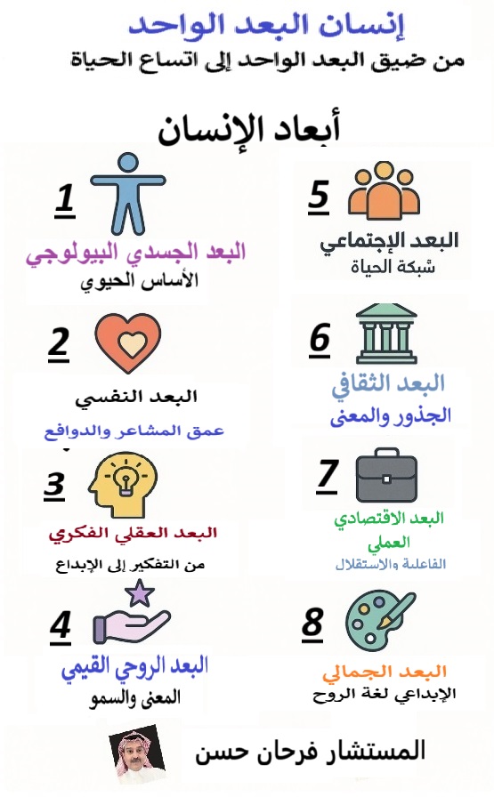 حين يتناغم الإنسان مع أبعاده الثمانية يصبح أكثر قدرة على الإبداع وأكثر وعيًا بذاته وأكثر حضورًا في مجتمعه إنسانًا حرًا في زمن التكرار.
