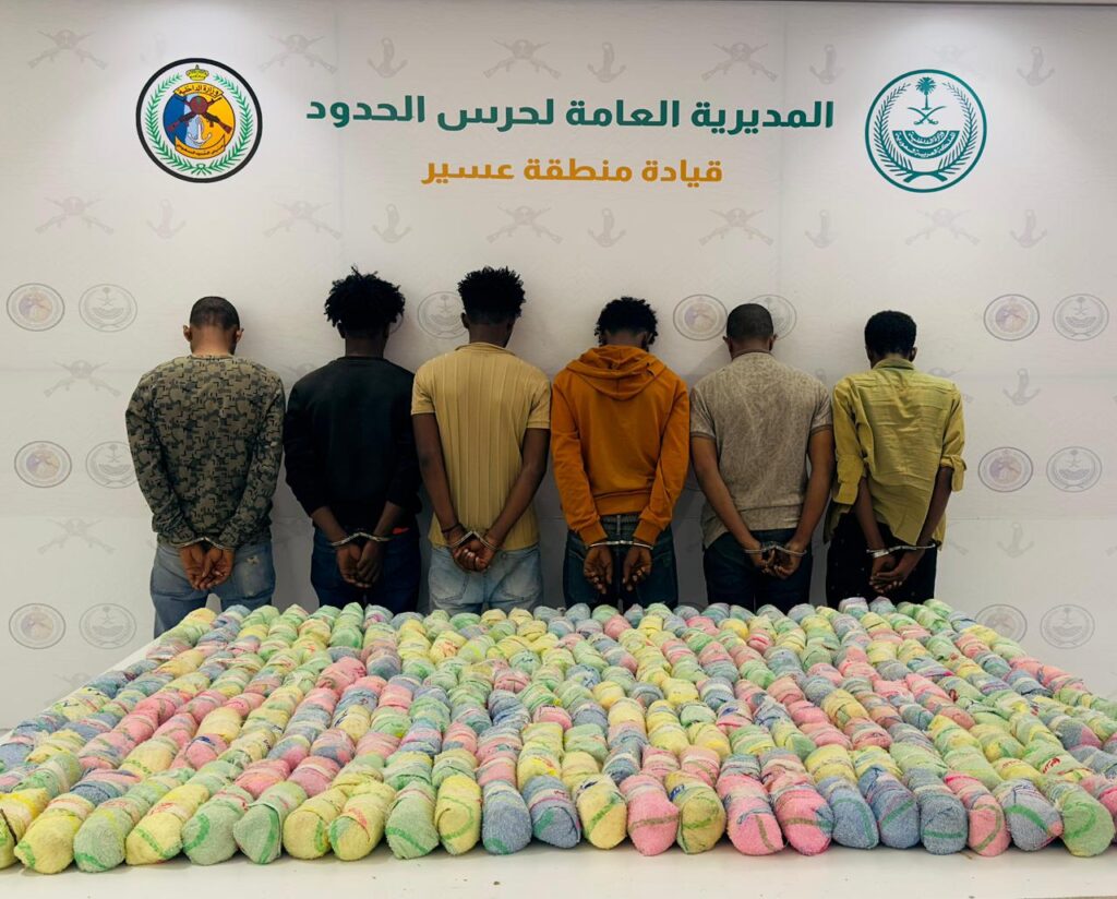 قبضت الدوريات البرية لحرس الحدود في قطاع الربوعة بمنطقة عسير على (6) مخالفين لنظام أمن الحدود من الجنسية الإثيوبية، لتهريبهم (100) كيلوجرام من نبات القات المخدر، وجرى استكمال الإجراءات النظامية الأولية بحقهم، وتسليمهم والمضبوطات لجهة الاختصاص.