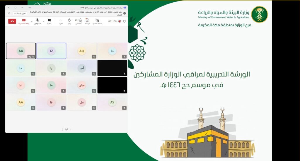 وبلغ عدد الحضور المشاركين في هذه الورشة ما يزيد عن 257 من المكلفين والمكلفات لإعدادهم وتأهيلهم لتولي مهام الإشراف على الأسواق والمسالخ بكفاءة واحترافية، من خلال تزويدهم بالمعارف والمهارات اللازمة لتحقيق الرقابة المثلى، مع التركيز على الرقابة الصحية وتحرير المخالفات وإعداد التقارير الدورية والتواصل مع الجمهور بهدف ضمان سلامة المنتجات وتعزيز ثقة المستهلكين وتحقيق بيئة صحية وآمنة، كما تهدف هذه الورشة إلى تعزيز وعيهم بأهمية الالتزام بالاشتراطات الصحية والشرعية، لضمان تلبية احتياجات الحجاج وضمان سلامة المنتجات الغذائية.