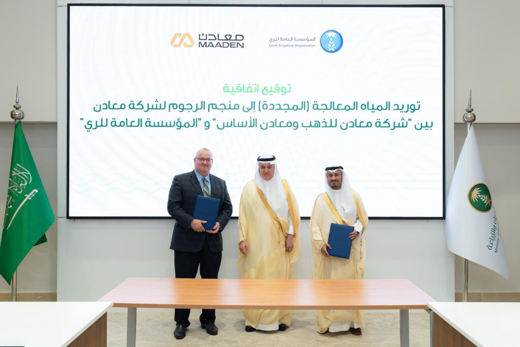 كما وقّعت المؤسسة اتفاقية مع شركة “معادن”؛ لتوريد من 17 ألف متر مكعب الى 50 ألف متر مكعب يومياً من المياه المُجددة من محطة معالجة شمال الطائف لصالح منجم الرجوم، وتأتي هذه الاتفاقية كخطوة إستراتيجية لدعم العمليات التعدينية بمصادر مياه مستدامة وتخفيف العبء على مصادر المياه الجوفية، مما يعزز دور المؤسسة العامة للري و شركة معادن في تبني الحلول البيئية المتقدمة، وستسهم هذه الاتفاقية في دعم قطاع البيئة عبر تعزيز التوسع في استخدام المياه غير التقليدية وتخفيف الضغط على الموارد الجوفية، بما يدعم الأمن المائي ويحسن استدامة موارد المياه المتجددة في منطقة مكة المكرمة.