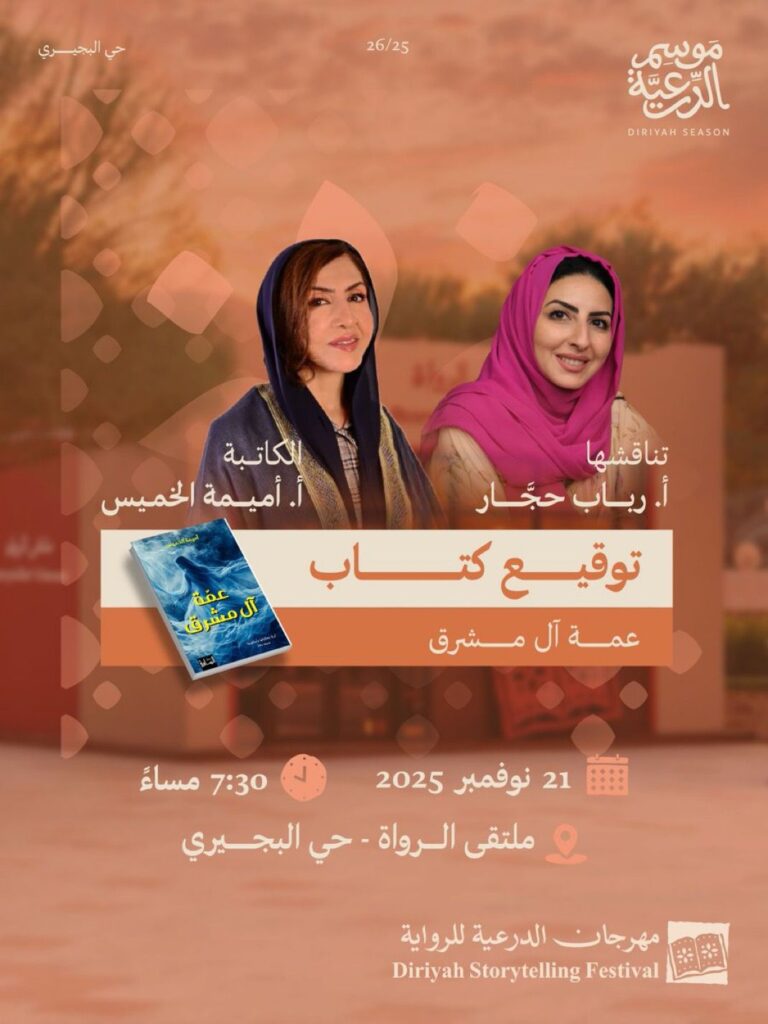 وتأتي رواية عمة آل مشرق امتدادًا لمسيرة الكاتبة أميمة الخميس في طرح أعمال أدبية تستند إلى قراءة عميقة للتاريخ والمجتمع وتوظيف عناصر الحكاية في بناء نص يتقاطع فيه الخيال مع الواقع بما يعكس اهتمامها بالموروث الثقافي وقدرته على تشكيل الوعي الإنساني