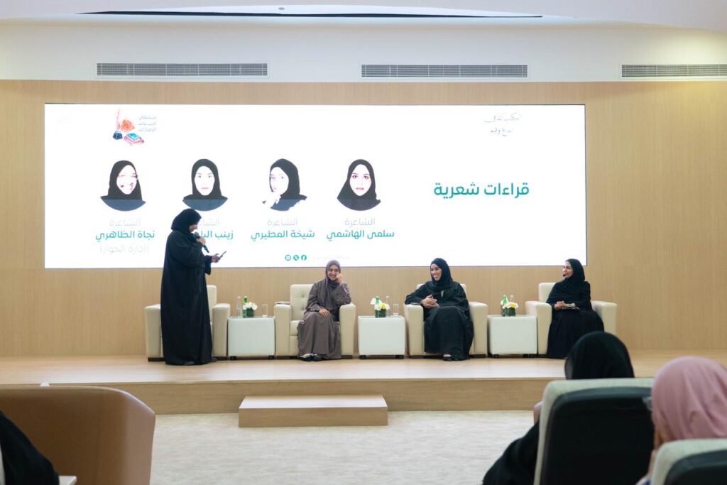 في جلسة لعدد من الشاعرات الإماراتيات بعنوان ( قراءات شعرية ) أدارتها الشاعرة نجاة الظاهري ، وشاركت في تقديم القراءات كل من : الشاعرة سلمى الهاشمي ، والشاعرة شيخة المطيري ، والشاعرة زينب البلوشي ، تنوعت القراءات بين مختلف أنواع الشعر ، وركزت الشاعرات على القصائد الوطنية والقضايا المجتمعية ..