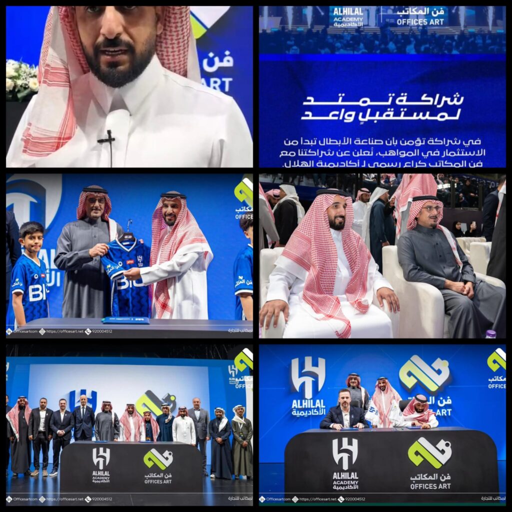 وقّعت شركة فنّ المكاتب للتجارة اتفاقية شراكة مع أكاديمية نادي الهلال، بحضور رئيس نادي الهلال صاحب السمو الأمير نواف بن سعد والأستاذ نايف بن محمد الزندي رئيس مجلس إدارة فن المكاتب، وذلك في خطوة تعكس توجه الشركة نحو بناء شراكات استراتيجية تدعم القطاع الرياضي وتسهم في تنمية المواهب الوطنية.