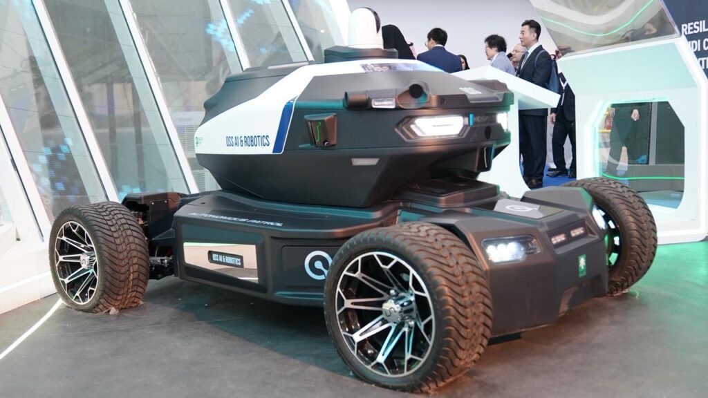 وتحتوي المركبة على كاميرات مراقبة أمنية مدعومة بتقنيات الذكاء الاصطناعي لتنفيذ مهام حماية المنشآت الحيوية ذاتيًا وتعزيز القدرات الأمنية.