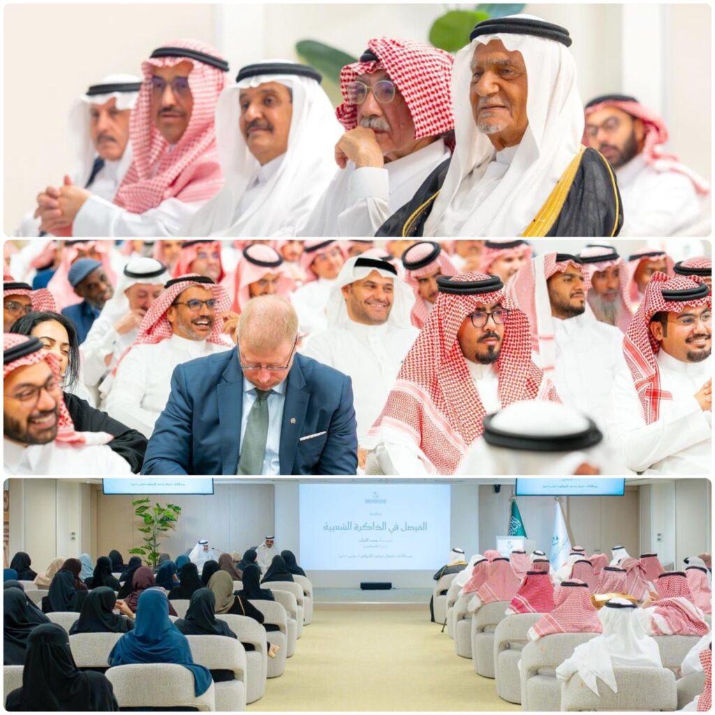 بحضور صاحب السمو الملكي الأمير تركي الفيصل رئيس مجلس إدارة مركز اللك فيصل للبحوث والدراسات الإسلامية، نظّم مركز الملك فيصل للبحوث والدراسات الإسلامية، ضمن برنامجه “الفيصل الثقافي”، أمس، محاضرة بعنوان “الفيصل في الذاكرة الشعبية”، قدّمها المستشار أول في وزارة الثقافة سعد الثنيان، وحاوره الباحث والكاتب قاسم الرويس.