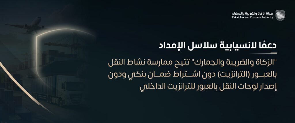أعلنت هيئة “الزكاة والضريبة والجمارك” (#زاتكا) عن إتاحة ممارسة نشاط النقل بالعبور (الترانزيت) دون اشتراط تقديم ضمان بنكي، وذلك خلال المرحلة الحالية التي تسعى فيها الهيئة إلى تعزيز مرونة إجراءات العمل في منظومة التخليص الجمركي، ورفع كفاءة سلاسل الإمداد عبر المنافذ البرية والبحرية والجوية في المملكة.