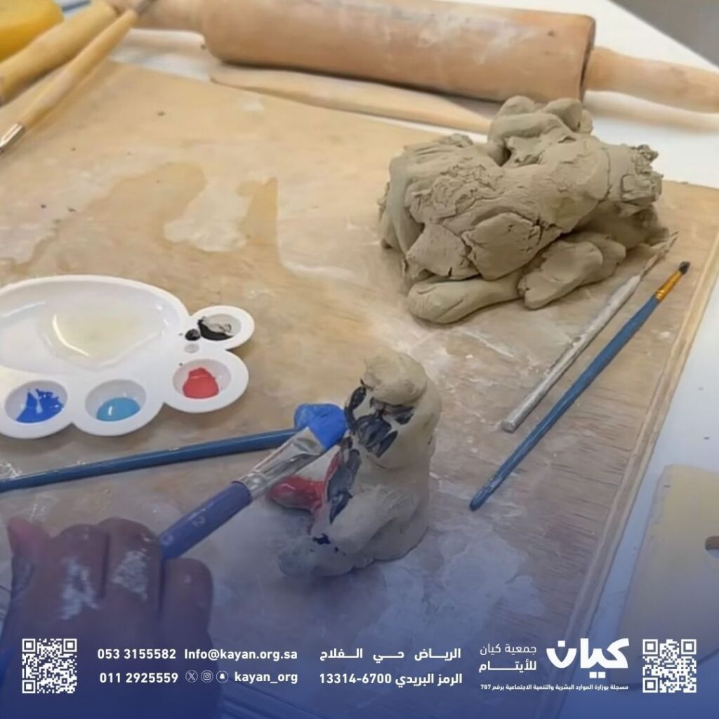 أقامت جمعية كيان للأيتام ذوي الظروف الخاصة، بالتعاون مع مؤسسة بينالي الدرعية، ورشة إبداعية متميزة للأطفال ضمن “مشروع جودة حياة”، استهدفت الفئة العمرية من 5 إلى 10 سنوات، تحت عنوان: “تشكيل حيواني المفضل بالطين”.