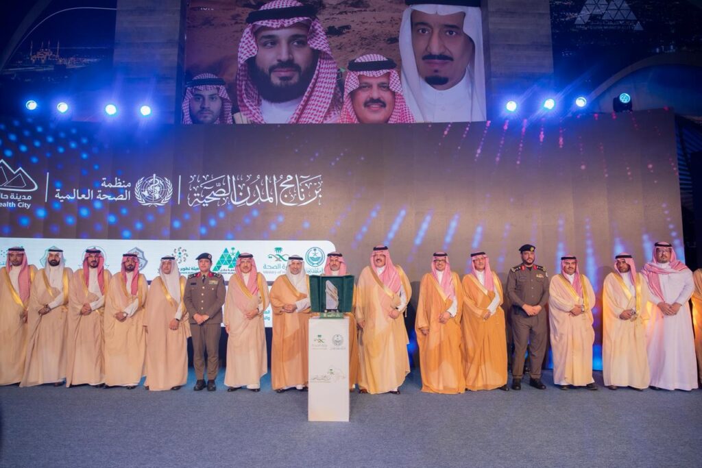 وفي ختام الحفل، تسلّم سمو أمير منطقة حائل شهادة اعتماد المدينة الصحية من منظمة الصحة العالمية، وشهد تكريم إمارة المنطقة وشركاء النجاح من الجهات الحكومية والخاصة وغير الربحية، نظير إسهاماتهم في تحقيق هذا المنجز، كما التقطت صورة تذكارية مع منسقي الجهات المشاركة.