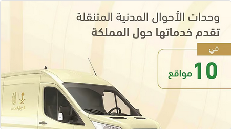 تقدّم الوحدات المتنقلة للأحوال المدنية خدماتها للرجال والنساء في (10) مواقع حول المملكة، وذلك ضمن مبادرة “نأتي إليك” التي تنفّذها وكالة وزارة الداخلية للأحوال المدنية للجهات الحكومية والخاصة، ومبادرة “موجودين” الموجّهة لخدمة المحافظات والمراكز والقرى البعيدة عن مكاتب الأحوال المدنية.