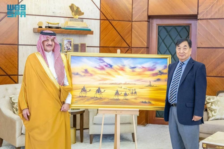 وفي نهاية اللقاء، أهدى رئيس المجلس سموه لوحة فنية من أعمال الرسام الكوري (سيونج باكيم) الذي يقيم في المملكة منذ 40 عامًا.