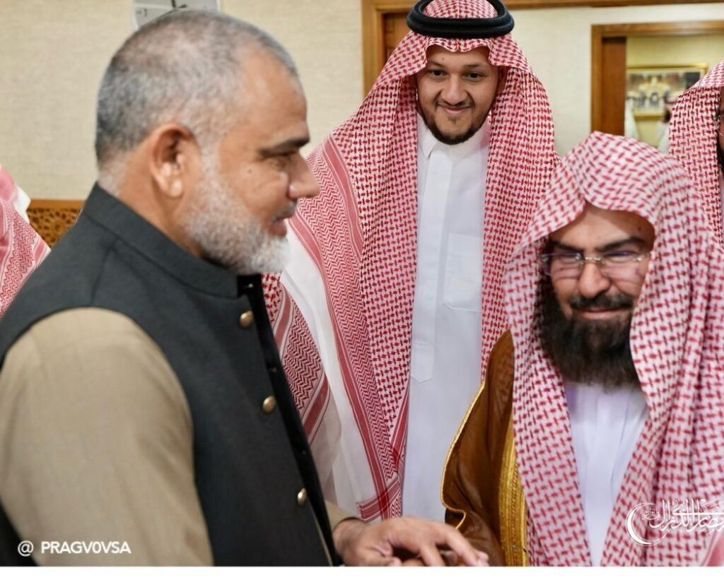 وشدَّد معالي الشيخ الدكتور: عبدالرحمن السديس، على حرص رئاسة الشؤون الدينية على توفير الأجواء التعبّدية والروحية، والبيئة الإيمانية؛ فضلّا عن تبنّي قيم الاعتدال والفكر الوسطي، وتحقيق رسالة الإسلام في نشر السلام والعدل، وتنمية التعارف والتعاون بين الشعوب. يسود السلام والوئام كافة أرجاء المعمورة، وأن يستلهم المسلمون من الحرمين مبادئ دينهم الحنيف؛ الذي يدعو إلى وحدة الصف، ولمِّ الشمل، والاستمساك بالعروة الوثقى، وتعزيز منهج الوسط والاعتدال ونطاقات العقيدة ومنهج السلف الصالح والكتاب والسنة، والحرص على جمع كلمة المسلمين، ونبذ الفُرقة والخلاف والتنازع والشقاق، كما قال تعالى (واعتصموا بحبل الله جميعًا ولا تفرقوا). وأوضح أنَّ العلاقات السعودية الباكستانية، تعدُّ نموذجًا يُحتذى به في العالم، مشددًا على أنَّ القيادتين الحكيمتين في البلدين تعملان معًا لتحقيق الأمن والسلام، وإيجاد حلول عادلة لقضايا الأمة الإسلامية والأمن والاستقرار والسلام العالمي. وتابع معالي رئيس الشؤون الدينية، قائلًا: “العلاقة السعودية الباكستانية تعدُّ مثل الجسد الواحد، والرأس الواحدة بعينين”. وثمَّن معالي الشيخ الدكتور: عبدالرحمن السديس، جهود المملكة وجمهورية الباكستان الرائدة في خدمة الإسلام والمسلمين والشعوب الإسلامية والإنسانية، لافتًا إلى أن المملكة لم تألُ جهدًا في مناصرة قضايا العالم الإسلامي في كافة المحافل الدولية العالمية، ودعم البرامج التوعوية، ونشر منهج الوسطية والاعتدال، بما ينعكس على دور الأمة الإسلامية في تحقيق الرخاء والنماء لمجتمعاتها وأفرادها، مقدِّرًا جهود جمهورية الباكستان الإسلامية في تعزيز العمل الإسلامي المشترك، ودعم قضايا المسلمين المعاصرة وحماية مقدساتهم، ودعمه لحوار الحضارات ونشر ثقافة الحوار بين الثقافات والحضارات بما يخدم رسالة الدين الإسلامي الحنيف إلى جانب دورها في محاربة التطرُّف الديني والغلو، وتعزيز السلام والتسامح، ونبذ الصراع والكراهية ومحاربة الإسلاموفوبيا، وتعزيز قيم الحوار بين أتباع الثقافات والحضارات . وخاطب الشيخ الدكتور: عبدالرحمن السديس، القيادات الباكستانية، قائلًا “لقد منَّ الله عليكم أن سخركم للدفاع عن وطنكم والأمة الإسلامية، حاثًّا إياهم على محاربة الأفكار الضالة والتنظيمات الإرهابية والعناية بالجيل الجديد وتوعيتهم بتبني الأفكار المعتدلة والتسامح، إلى جانب مكافحة التطرف والتعصب والتحزب والانحلال والغزو الفكري”.