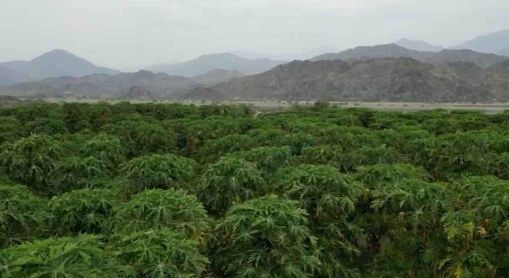تمثل المزرعة الأولى لفاكهة البابايا في مركز الرهوة بمحافظة الليث إحدى أبرز المشاريع الزراعية الناجحة في المنطقة، حيث تمتد على مساحة 100 ألف متر مربع، وتنتج أكثر من 350 طنًا سنويًا، مما يجعلها مصدرًا مهمًا لهذه الفاكهة الاستوائية ،