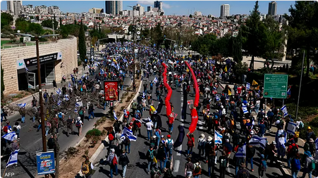انطلقت مسيرة حاشدة في القدس، الأربعاء، اعتراضا على سياسات رئيس الوزراء الإسرائيلي بنيامين نتنياهو، التي أدت إلى تجدد الحرب في قطاع غزة وعودة إيتمار بن غفير للحكومة وزيرا للأمن القومي.