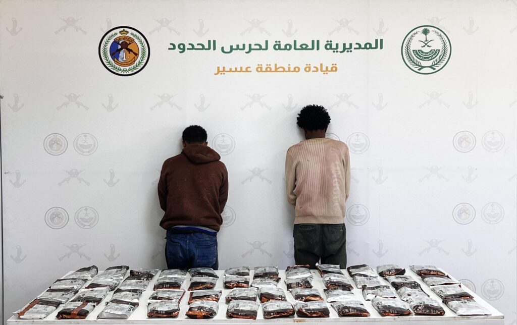 قبضت الدوريات البرية لحرس الحدود في قطاع الربوعة بمنطقة عسير على مخالفين لنظام أمن الحدود من الجنسية الإثيوبية، لتهريبهما (48) كيلوجرامًا من مادة الحشيش المخدر، وجرى استكمال الإجراءات النظامية الأولية بحقهما، وتسليمهما والمضبوطات لجهة الاختصاص.