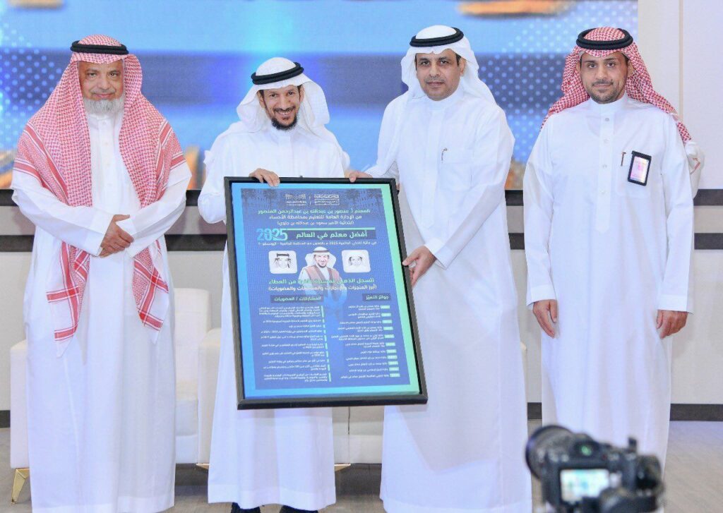 تلا ذلك كلمة لمدير التعليم أشاد فيها بجهود المعلم منصور في تقديم أساليب تربوية وتعليمية حديثة، مما أسهم في تحقيقه لجوائز دولية ومحلية وإقليمية عدة، توجها بلقب أفضل معلم في العالم، كما بارك له هذا الإنجاز الكبير متمنياً له مزيداً من التوفيق في مواصلة رسالته السامية ، مؤكدًا أن هذا الإنجاز يعكس حجم الرعاية والاهتمام اللذين توليهما القيادة الحكيمة- أيدها الله – لقطاع التعليم ومنسوبيه من معلمين ومعلمات وطلاب وطالبات ،