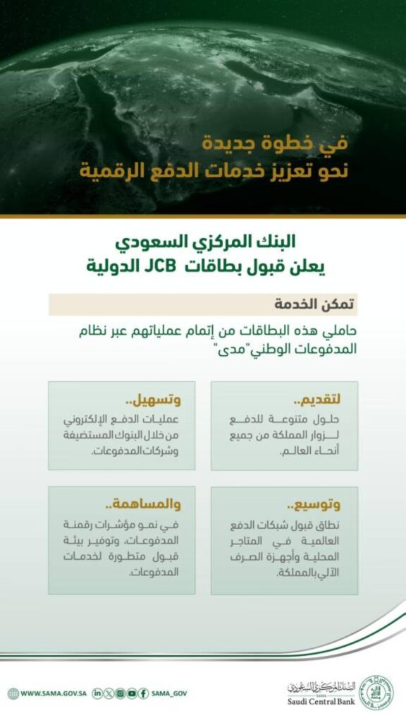 البنك المركزي السعودي يعلن جاهزية “مدى” لقبول بطاقات شبكة جي سي بي الدولية قراءة المزيد »